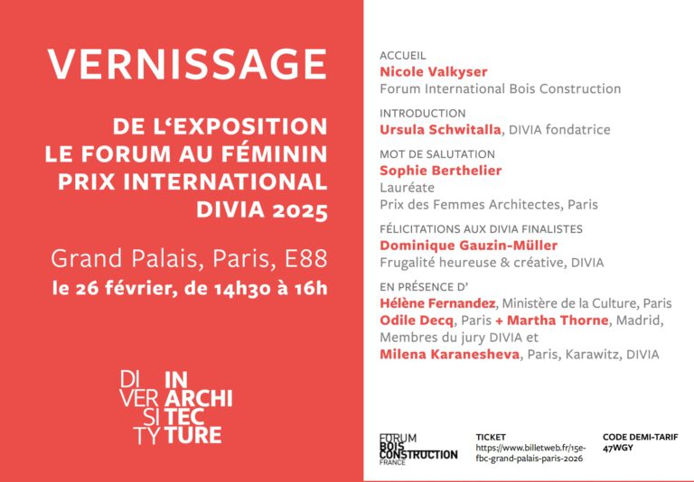 DIVIA Award 2025 Exposition À Paris, 25 – 27 Février 2026 – Grand Palais Paris, Égalité, visibilité et participation à la culture architecturale pour tous; Rejoignez DIVIA – Diversity in Architecture. Engagement pour une Équilibre dans l’Architecture et le Design.